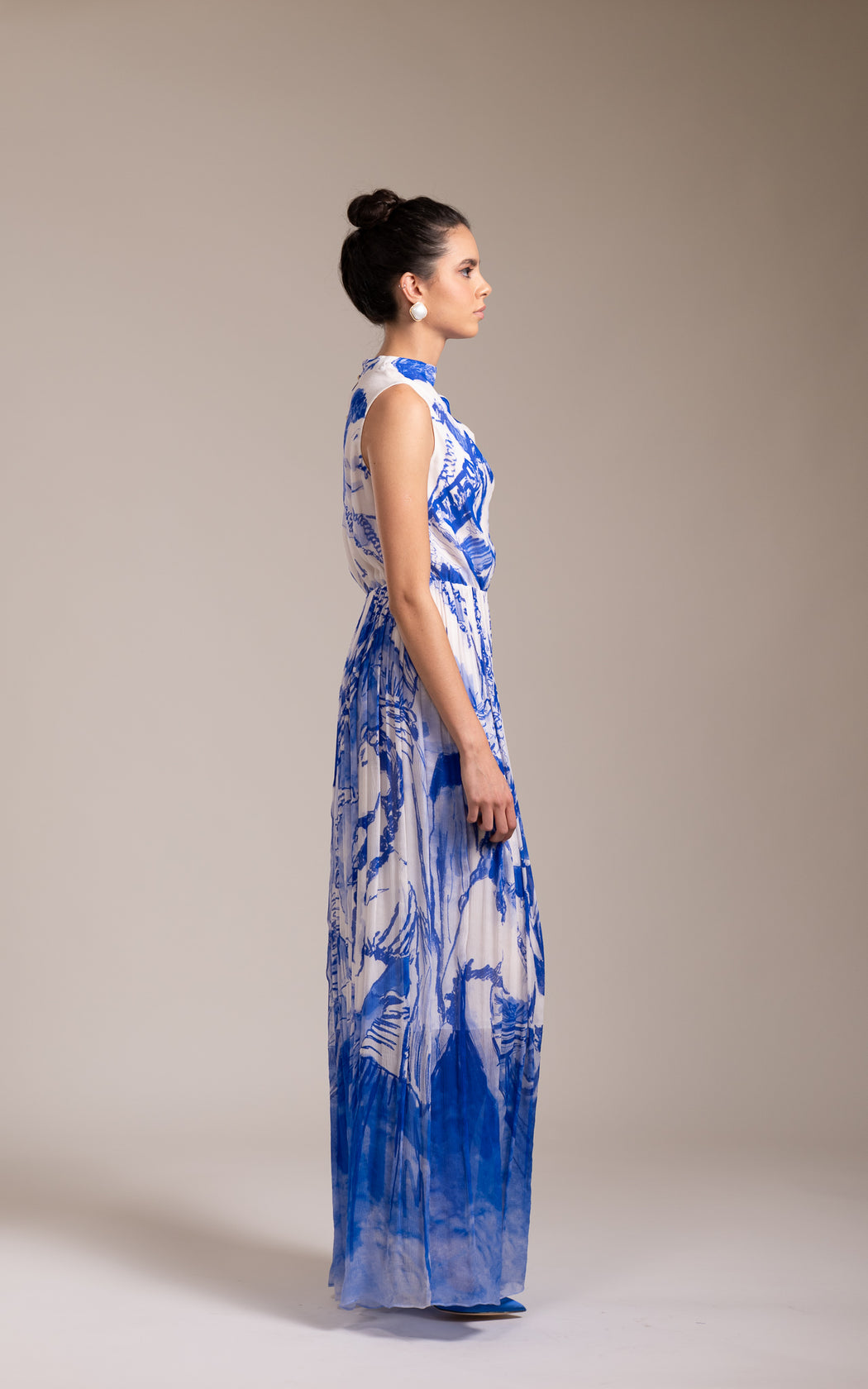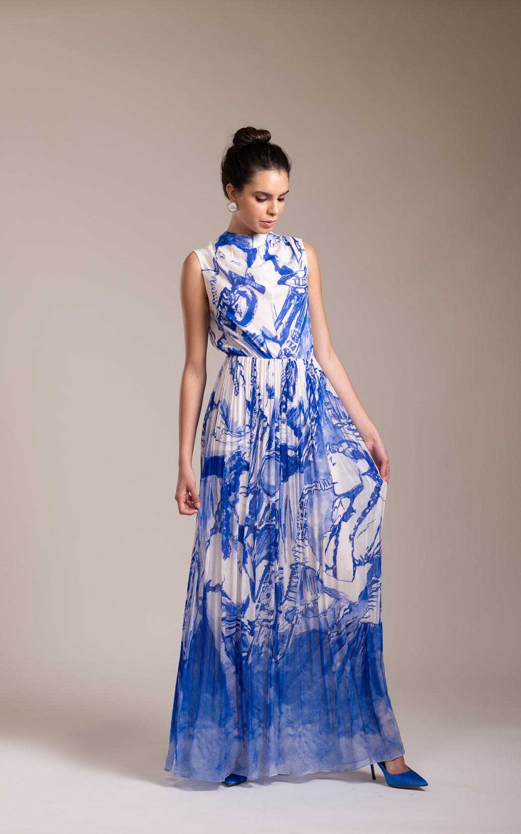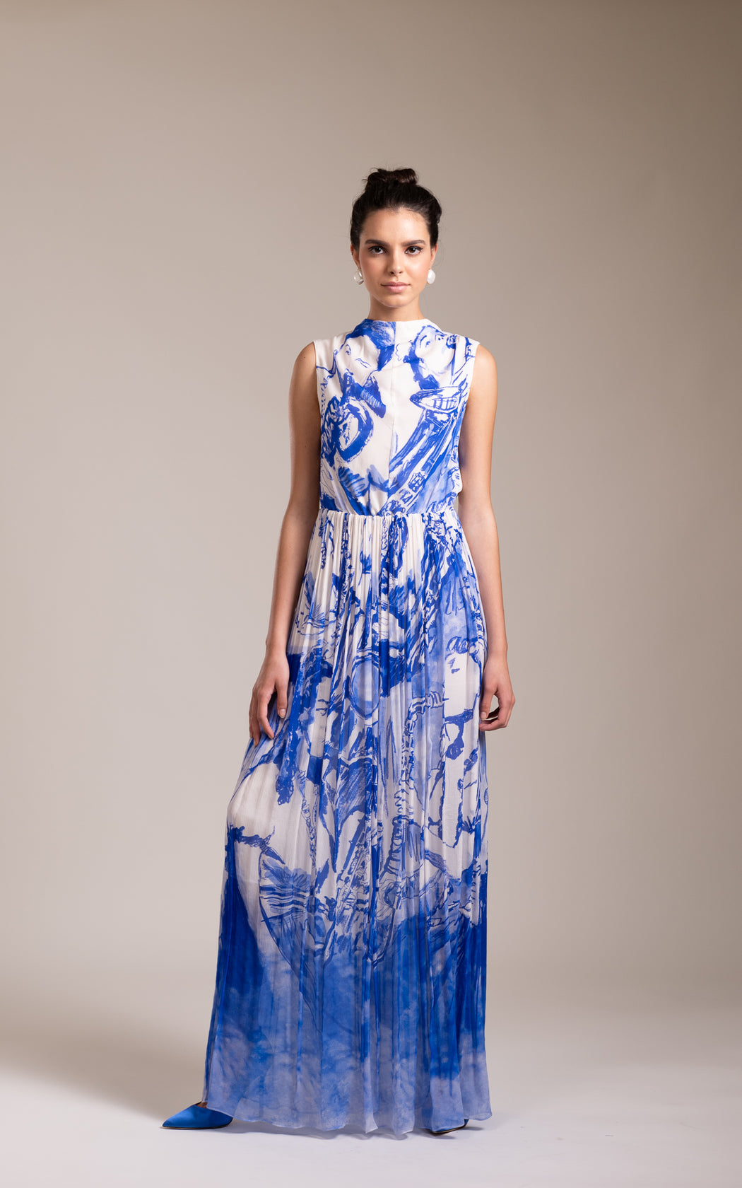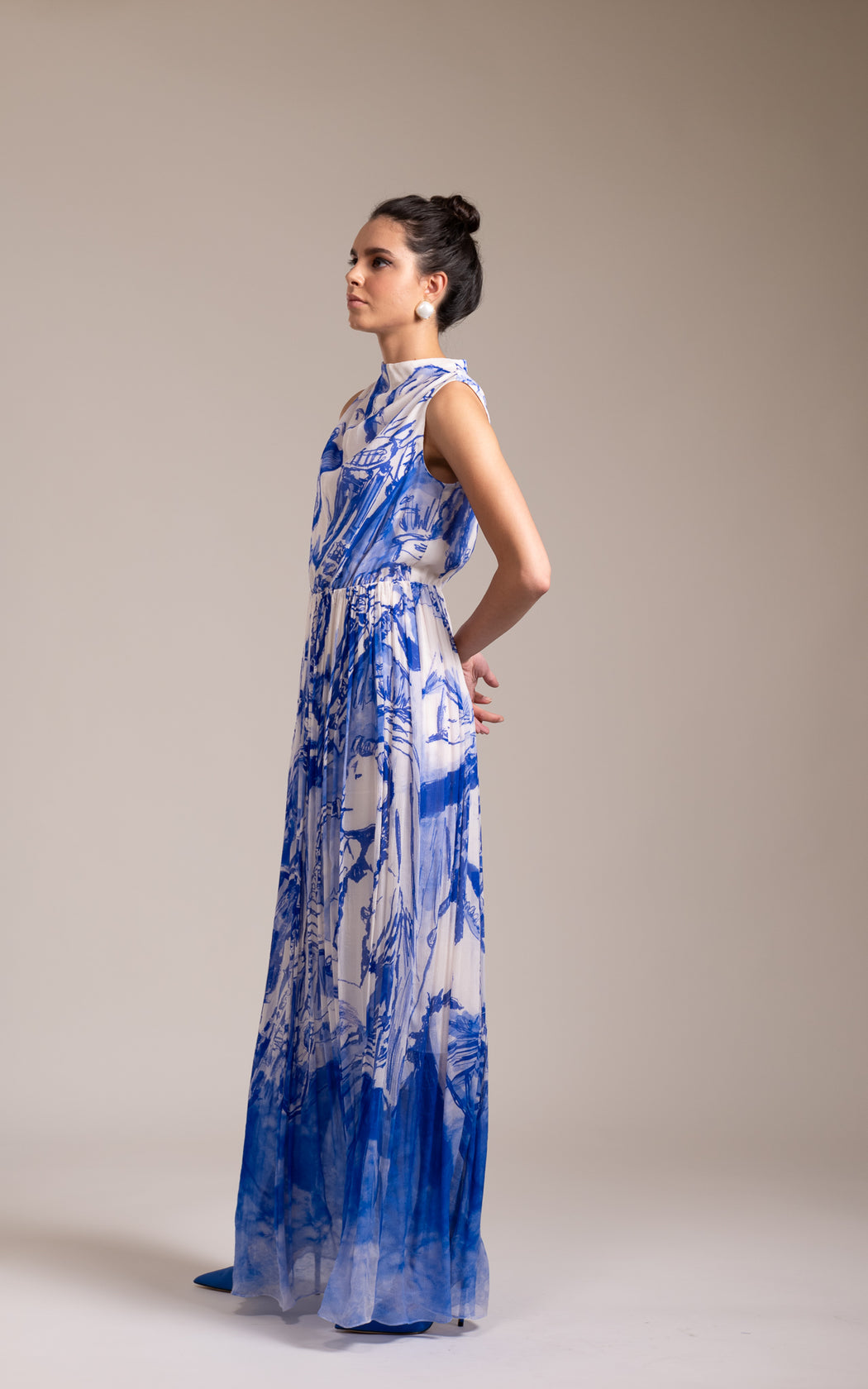 Our silk chiffon gathered cowl neck dress stands out with a vibrant in-house designed music band print. It comes with elasticated waist to provide that extra shape. It's a one piece dress that can be enjoyed with or without heels and works on all body types. Handcrafted in India using almost entirely natural materials.