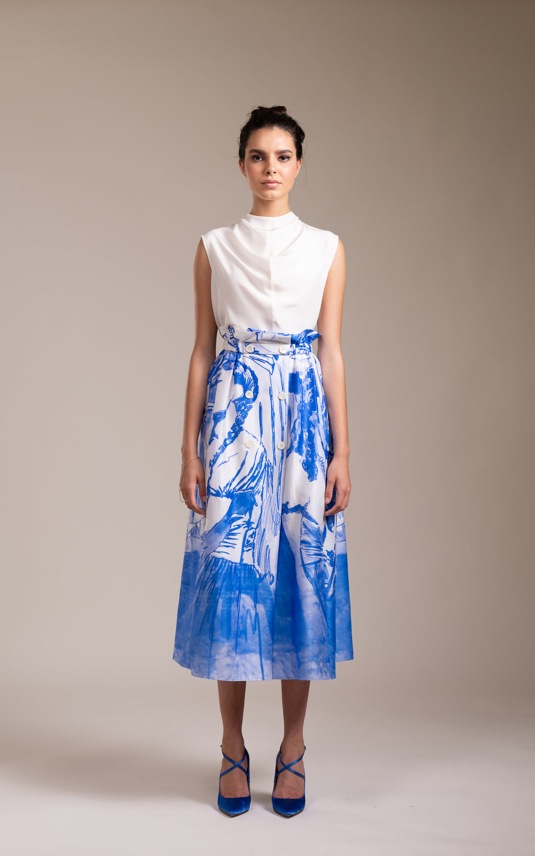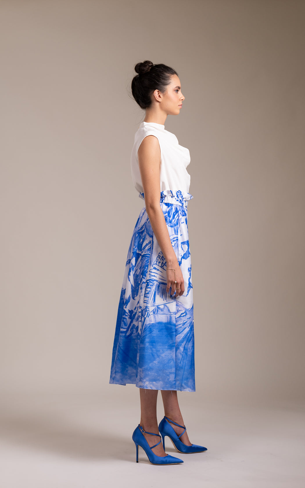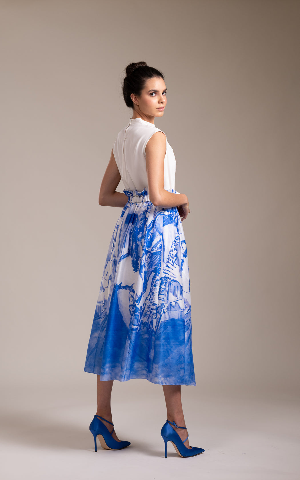 Our warp skirt is digitally printed with custom music band design. The skirt is shapely but comfortable. Skirt has a elasticated waist band and two pockets in front. A perfect statement skirt for relaxed lunches or dinners. Handcrafted in India.