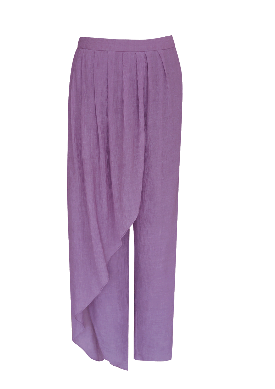 Our pleated trouser is a low crotch interpretation of the classic harem pant, with its characteristically relaxed boho fit and feel. This summer pant is lined with very lightweight georgette to avoid any transparency and has a elasticated waist band and concealed side zipper for easy in and out. Handcrafted in India using almost entirely natural materials. Handcrafted in India.